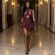 Francesca Blue Floral Ruche...Elegant Black & White Striped High Slit Gown